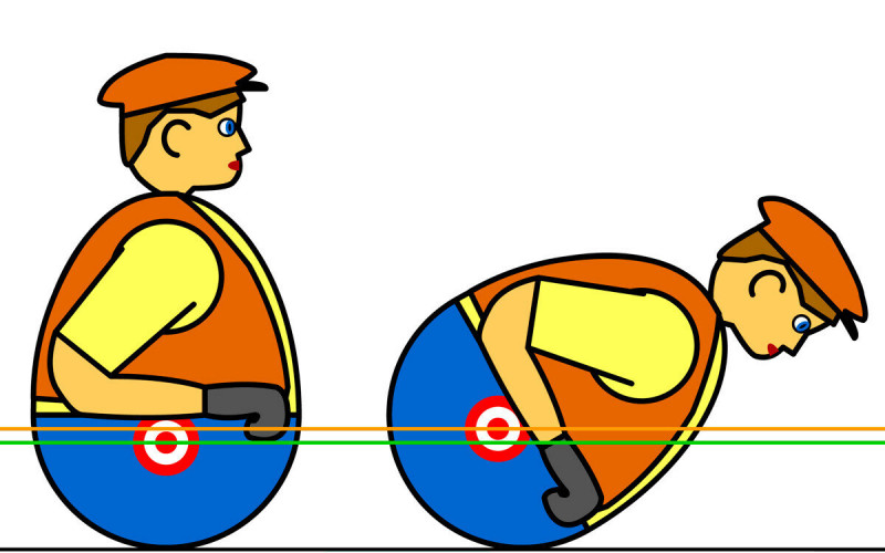 Кукла неваляшка состоит из двух полых сфер. Главной особенностью является утяжелитель внутри нижней сферы. Центр массы куклы расположен так, что как бы ни пытались ее повернуть или положить на бок, она всегда возвращается в вертикальное положение.